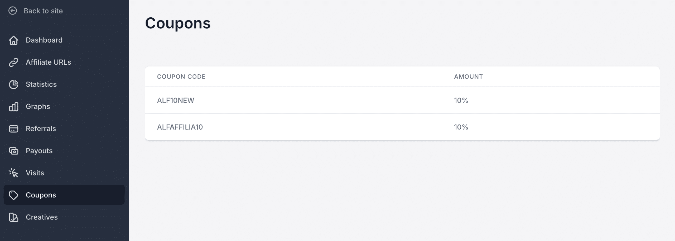 Lorsque les affiliés rejoignent votre programme, des coupons dynamiques peuvent être générés automatiquement pour eux.